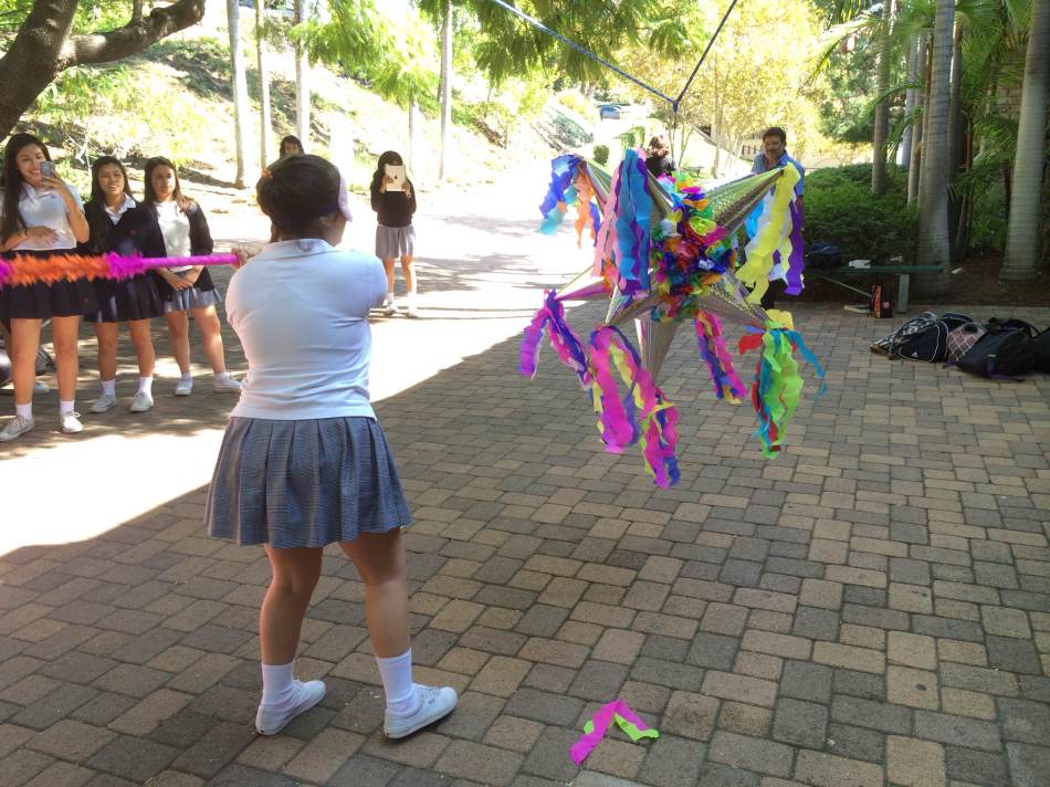 To culminate the festivities with a bang, the last activity that Spanish Club hosted was a piñata activity. Before breaking two piñatas, the Spanish Club board gave a presentation to students about the history of the game. Many did not realize that the participant who hits the piñata represents faith, which is the force that goes against evil. Because faith is blind, the hitter is blindfolded. Members of the crowd either assist the hitter by yelling “Higher!” or “Lower!” Others mislead the hitter by giving him or her false instructions. The stick represents virtue, and the piñata itself represents hope and charity, since participants share goodies after the piñata breaks. Have you noticed that many piñatas have seven colorful points with streamers attached to them? These seven points in this traditional design represent the seven deadly sins. For this Spanish Club activity, both a traditional piñata with seven points was broken, as well as an adorable pink horse-shaped one.