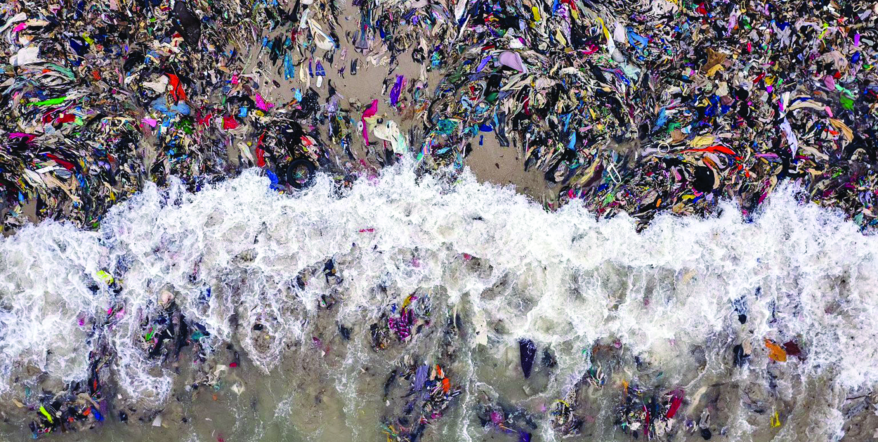 Photographer Muntaka Chasant has documented thousands of washed-up clothes on a beach in Africa to