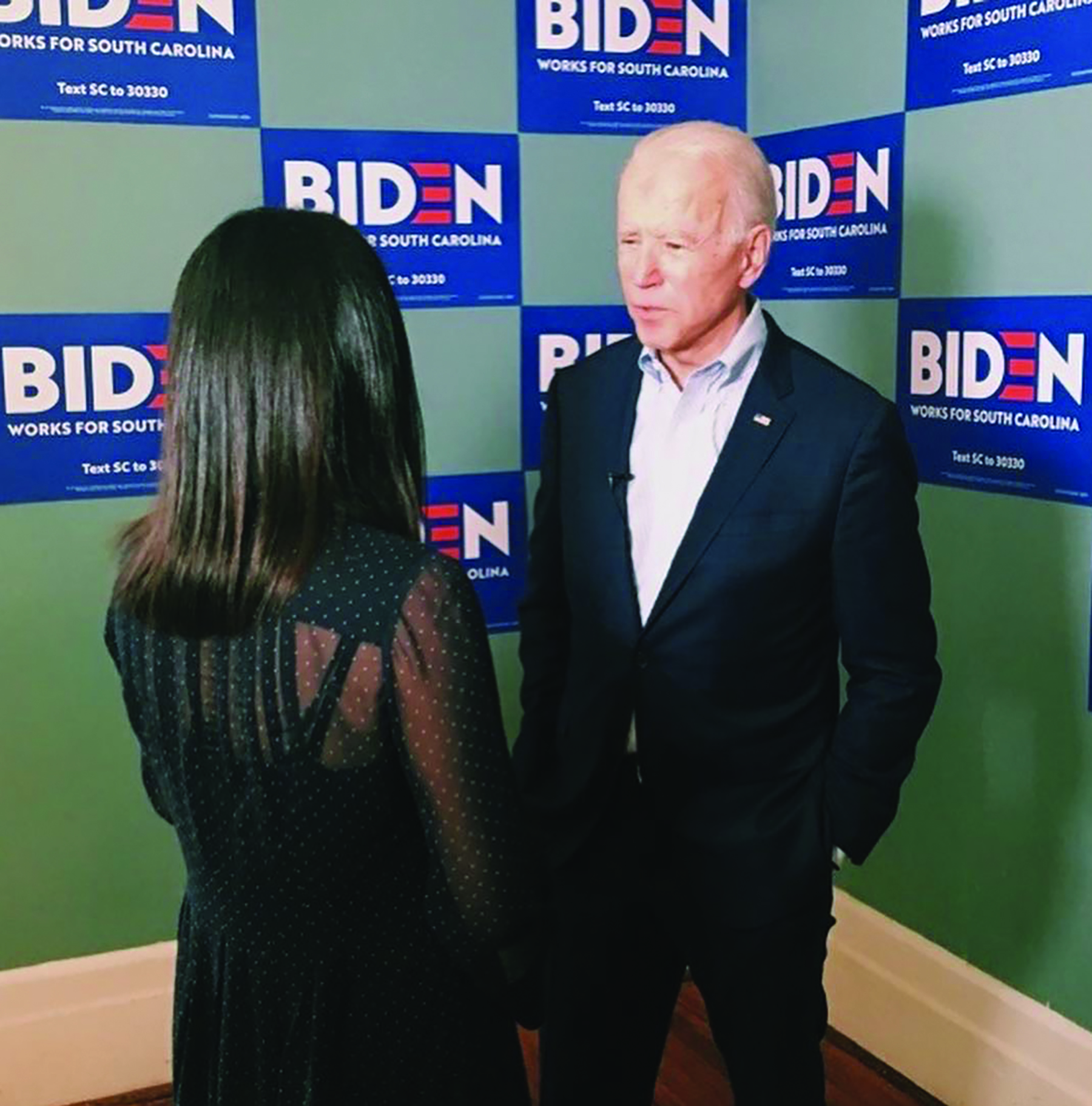 Sooji Nam interviewing president Joe Biden (Photo Credit: courtesy of Sooji Nam)